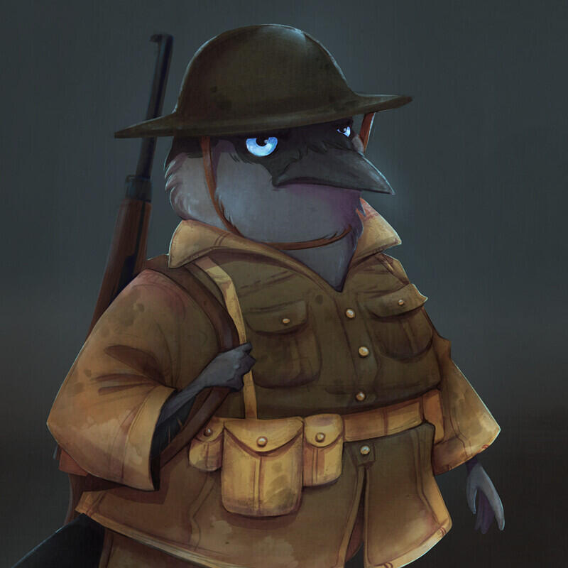 Character design challenge entry for "warrior birds", inspired by Nicholas Kole's artstyle